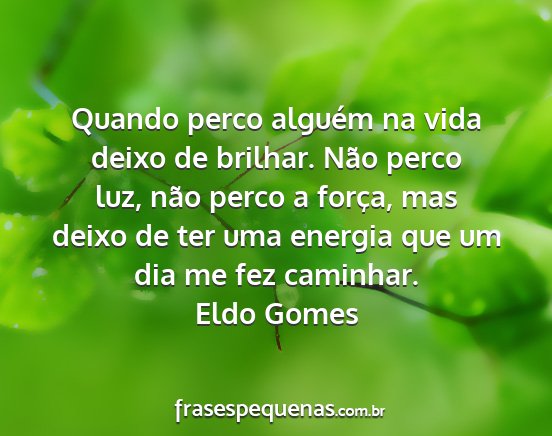 Quando perco alguém na vida deixo de brilhar. Não perco luz, não perco a força, mas deixo de ter uma energia que um dia me fez caminhar.Eldo Gomes