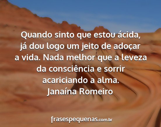 Quando sinto que estou ácida, já dou logo um jeito de adoçar a vida. Nada melhor que a leveza da consciência e sorrir acariciando a alma.Janaína Romeiro