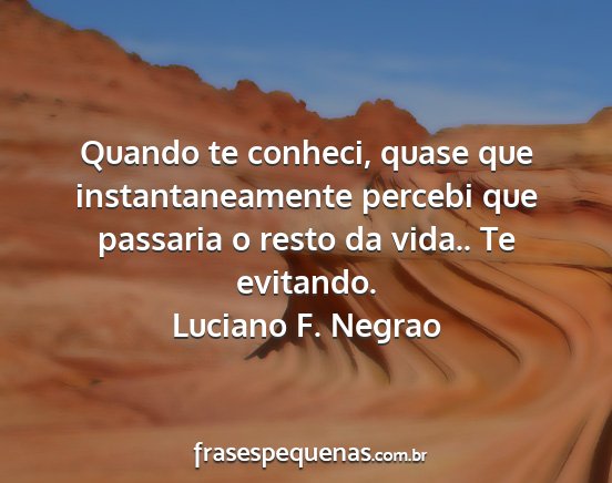 Quando te conheci, quase que instantaneamente percebi que passaria o resto da vida.. Te evitando.Luciano F. Negrao