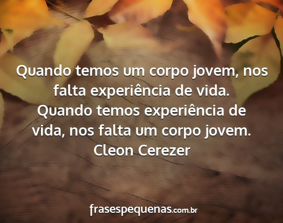 Quando temos um corpo jovem, nos falta experiência de vida. Quando temos experiência de vida, nos falta um corpo jovem.Cleon Cerezer