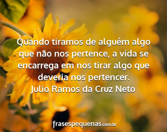 Quando tiramos de alguém algo que não nos pertence, a vida se encarrega em nos tirar algo que deveria nos pertencer.Julio Ramos da Cruz Neto
