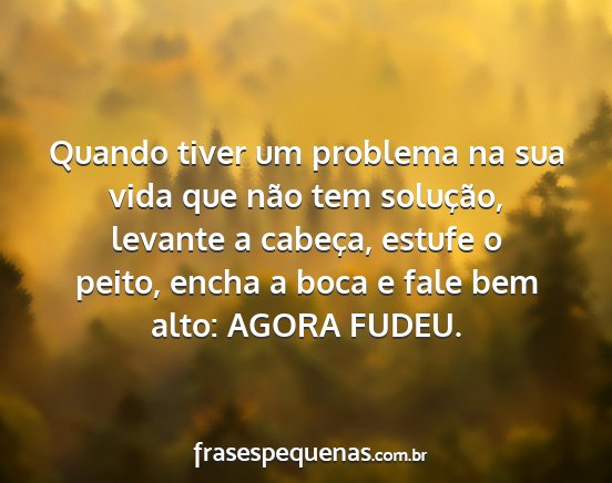 Quando tiver um problema na sua vida que não tem solução, levante a cabeça, estufe o peito, encha a boca e fale bem alto: AGORA FUDEU.