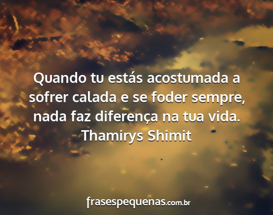Quando tu estás acostumada a sofrer calada e se foder sempre, nada faz diferença na tua vida.Thamirys Shimit