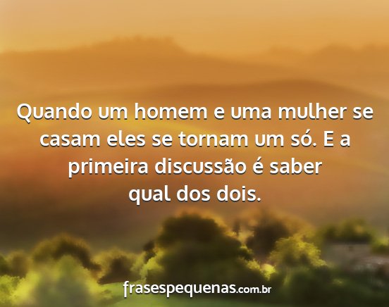 Quando um homem e uma mulher se casam eles se tornam um só. E a primeira discussão é saber qual dos dois.