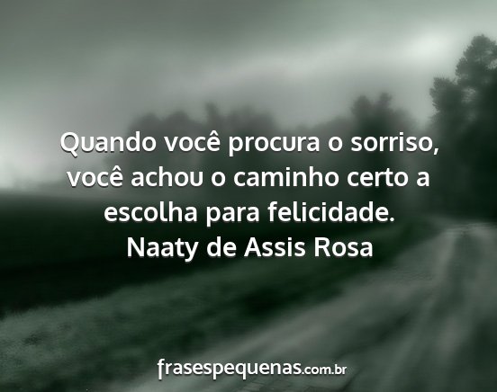 Quando você procura o sorriso, você achou o caminho certo a escolha para felicidade.Naaty de Assis Rosa