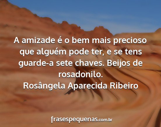 A amizade é o bem mais precioso que alguém pode ter, e se tens guarde-a sete chaves. Beijos de rosadonilo.Rosângela Aparecida Ribeiro