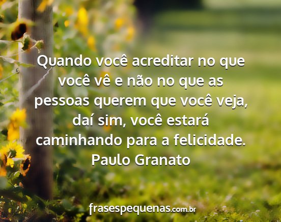 Quando você acreditar no que você vê e não no que as pessoas querem que você veja, daí sim, você estará caminhando para a felicidade.Paulo Granato