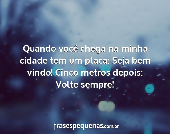 Quando você chega na minha cidade tem um placa: Seja bem vindo! Cinco metros depois: Volte sempre!