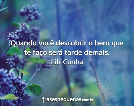 Quando você descobrir o bem que te...