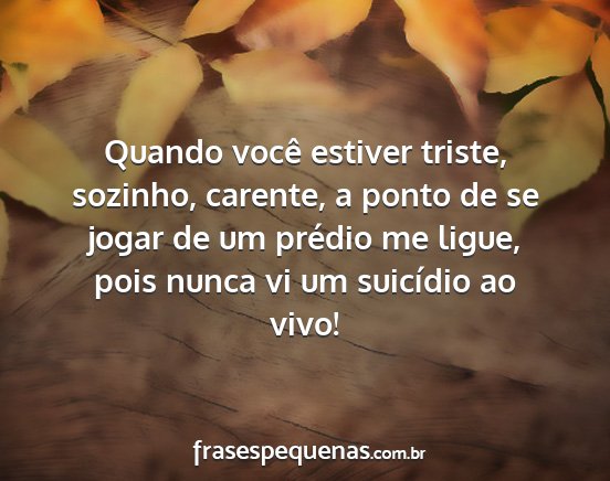 Quando você estiver triste, sozinho, carente, a ponto de se jogar de um prédio me ligue, pois nunca vi um suicídio ao vivo!