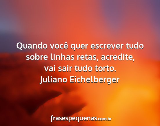 Quando você quer escrever tudo sobre linhas retas, acredite, vai sair tudo torto.Juliano Eichelberger