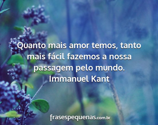 Quanto mais amor temos, tanto mais fácil fazemos a nossa passagem pelo mundo.