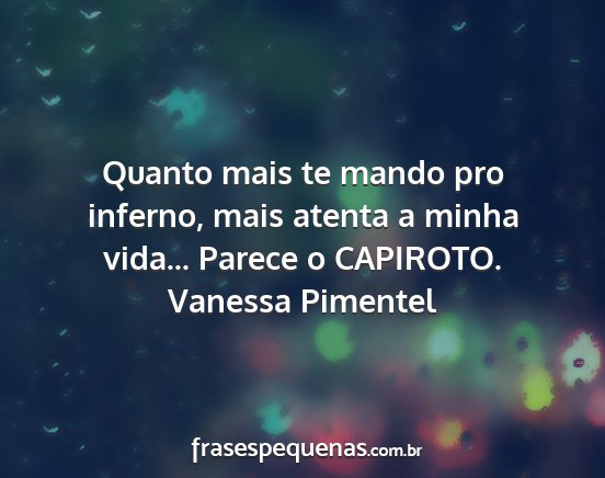 Quanto mais te mando pro inferno, mais atenta a minha vida... Parece o CAPIROTO.