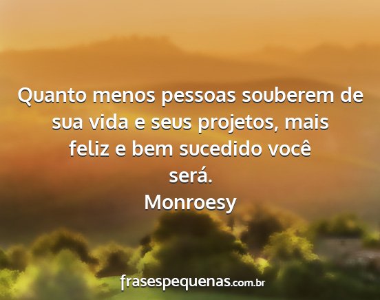 Quanto menos pessoas souberem de sua vida e seus projetos, mais feliz e bem sucedido você será.Monroesy