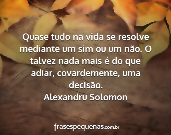 Quase tudo na vida se resolve mediante um sim ou um não. O talvez nada mais é do que adiar, covardemente, uma decisão.Alexandru Solomon