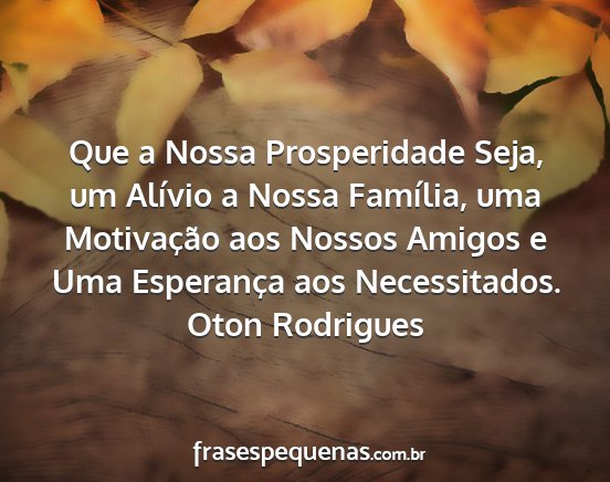 Que a Nossa Prosperidade Seja, um Alívio a Nossa Família, uma Motivação aos Nossos Amigos e Uma Esperança aos Necessitados.Oton Rodrigues