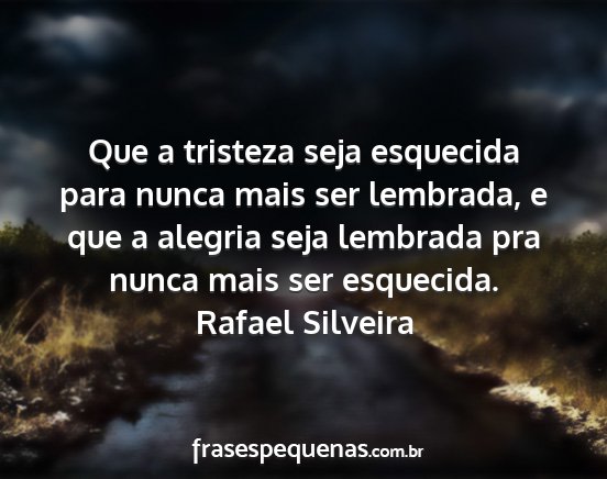 Que a tristeza seja esquecida para nunca mais ser lembrada, e que a alegria seja lembrada pra nunca mais ser esquecida.Rafael Silveira