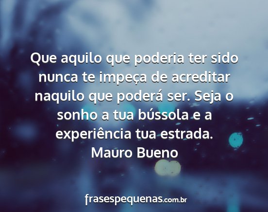 Que aquilo que poderia ter sido nunca te impeça de acreditar naquilo que poderá ser. Seja o sonho a tua bússola e a experiência tua estrada.Mauro Bueno