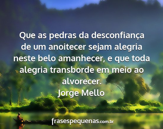 Que as pedras da desconfiança de um anoitecer sejam alegria neste belo amanhecer, e que toda alegria transborde em meio ao alvorecer.Jorge Mello