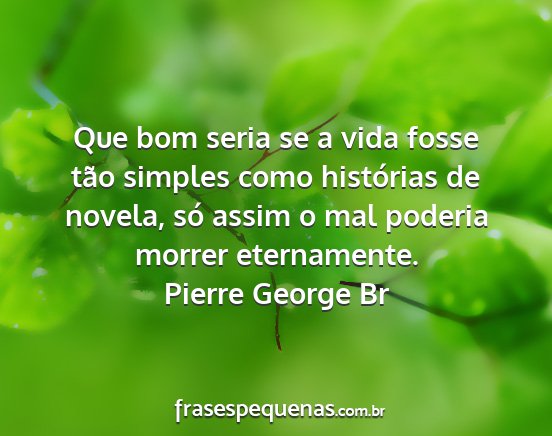 Que bom seria se a vida fosse tão simples como histórias de novela, só assim o mal poderia morrer eternamente.Pierre George Br