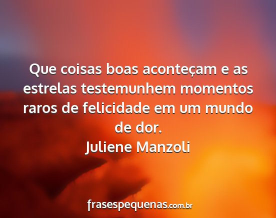 Que coisas boas aconteçam e as estrelas testemunhem momentos raros de felicidade em um mundo de dor.Juliene Manzoli