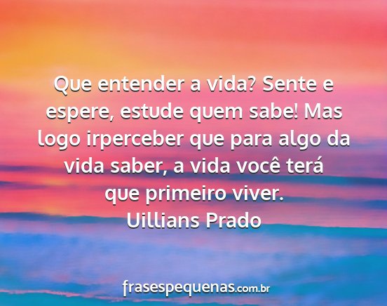 Que entender a vida? Sente e espere, estude quem sabe! Mas logo irperceber que para algo da vida saber, a vida você terá que primeiro viver.Uillians Prado