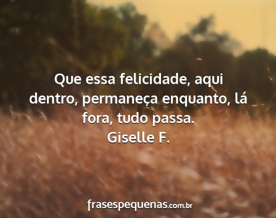 Que essa felicidade, aqui dentro, permaneça enquanto, lá fora, tudo passa.