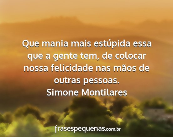 Que mania mais estúpida essa que a gente tem, de colocar nossa felicidade nas mãos de outras pessoas.Simone Montilares