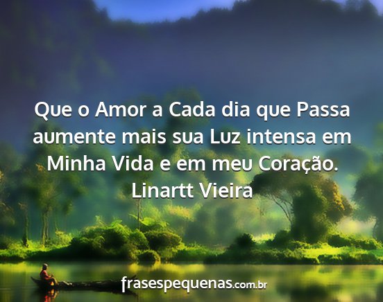 Que o Amor a Cada dia que Passa aumente mais sua Luz intensa em Minha Vida e em meu Coração.Linartt Vieira