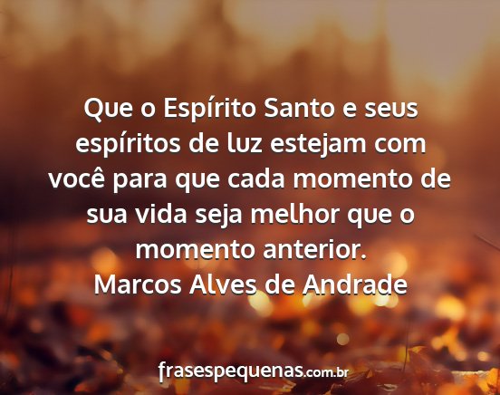 Que o Espírito Santo e seus espíritos de luz estejam com você para que cada momento de sua vida seja melhor que o momento anterior.Marcos Alves de Andrade