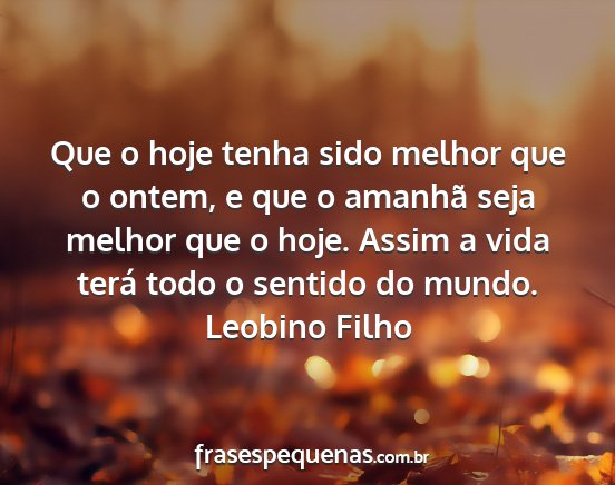 Que o hoje tenha sido melhor que o ontem, e que o amanhã seja melhor que o hoje. Assim a vida terá todo o sentido do mundo.Leobino Filho