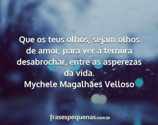 Que os teus olhos, sejam olhos de amor, para ver a ternura desabrochar, entre as asperezas da vida.Mychele Magalhães Velloso
