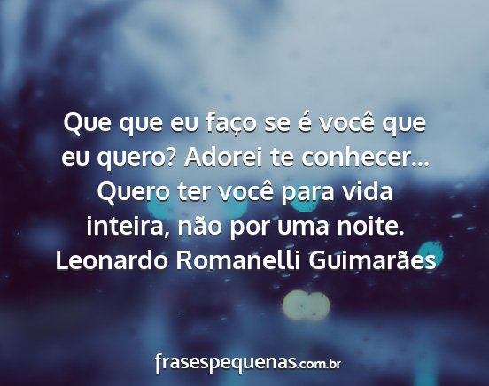 Que que eu faço se é você que eu quero? Adorei te conhecer... Quero ter você para vida inteira, não por uma noite.Leonardo Romanelli Guimarães