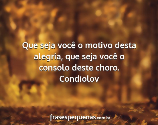 Que seja você o motivo desta alegria, que seja você o consolo deste choro.