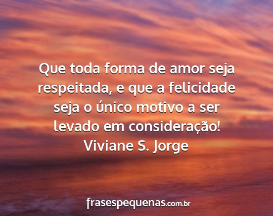 Que toda forma de amor seja respeitada, e que a felicidade seja o único motivo a ser levado em consideração!Viviane S. Jorge