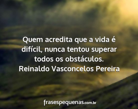 Quem acredita que a vida é difícil, nunca tentou superar todos os obstáculos.Reinaldo Vasconcelos Pereira
