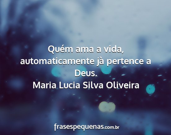 Quém ama a vida, automaticamente jà pertence a Deus.