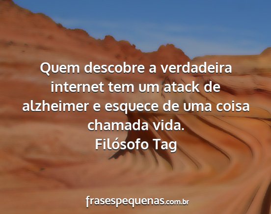 Quem descobre a verdadeira internet tem um atack de alzheimer e esquece de uma coisa chamada vida.Filósofo Tag