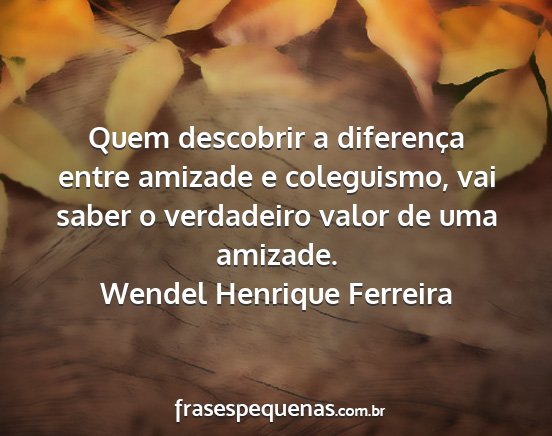 Quem descobrir a diferença entre amizade e coleguismo, vai saber o verdadeiro valor de uma amizade.Wendel Henrique Ferreira