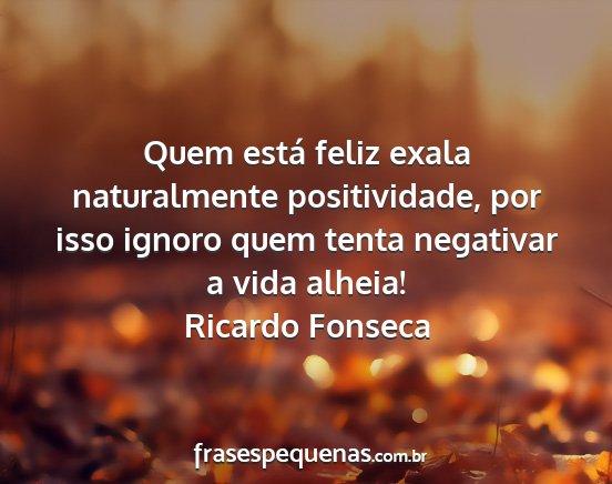 Quem está feliz exala naturalmente positividade, por isso ignoro quem tenta negativar a vida alheia!Ricardo Fonseca