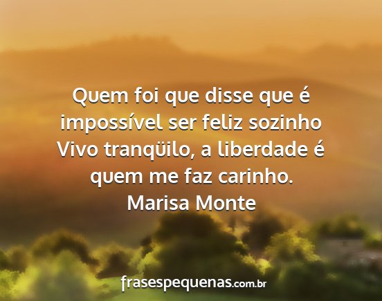 Vivo tranqüilo, a liberdade é quem me faz carinho.Marisa Monte