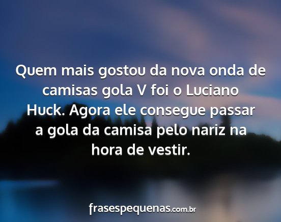 Quem mais gostou da nova onda de camisas gola V foi o Luciano Huck. Agora ele consegue passar a gola da camisa pelo nariz na hora de vestir.
