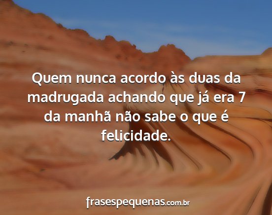 Quem nunca acordo às duas da madrugada achando que já era 7 da manhã não sabe o que é felicidade.