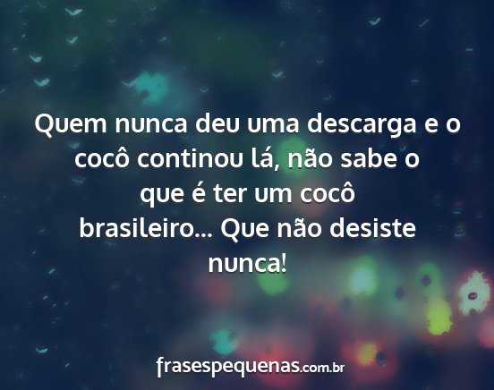 Quem nunca deu uma descarga e o cocô continou lá, não sabe o que é ter um cocô brasileiro... Que não desiste nunca!