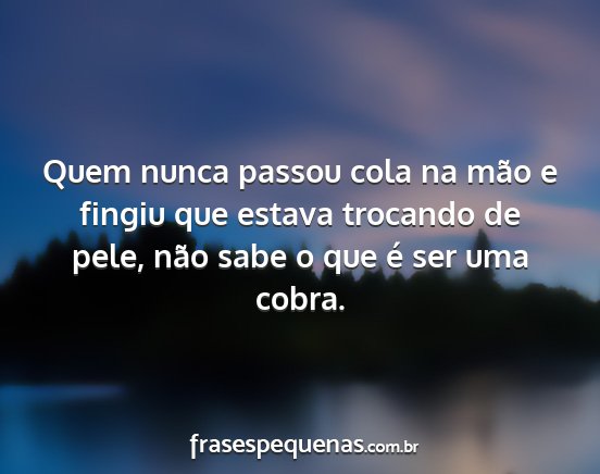 Quem nunca passou cola na mão e fingiu que estava trocando de pele, não sabe o que é ser uma cobra.