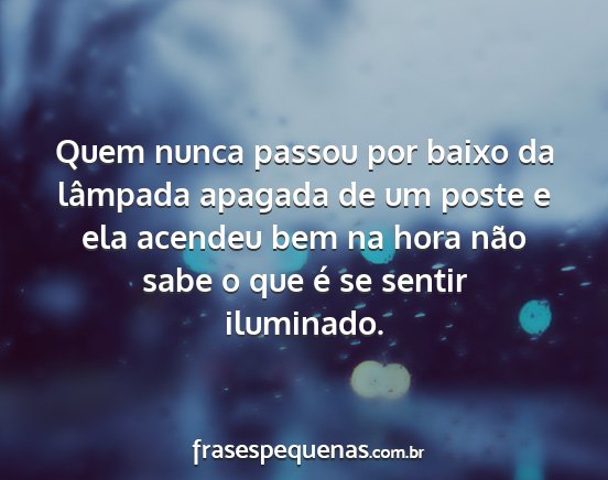 Quem nunca passou por baixo da lâmpada apagada de um poste e ela acendeu bem na hora não sabe o que é se sentir iluminado.