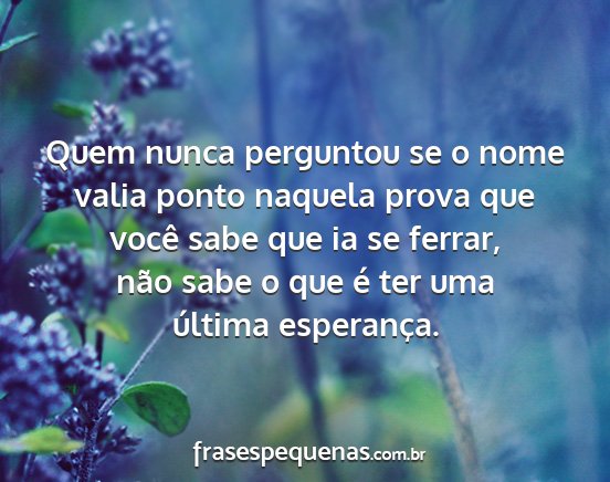 Quem nunca perguntou se o nome valia ponto naquela prova que você sabe que ia se ferrar, não sabe o que é ter uma última esperança.