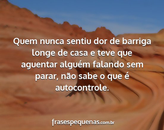 Quem nunca sentiu dor de barriga longe de casa e teve que aguentar alguém falando sem parar, não sabe o que é autocontrole.