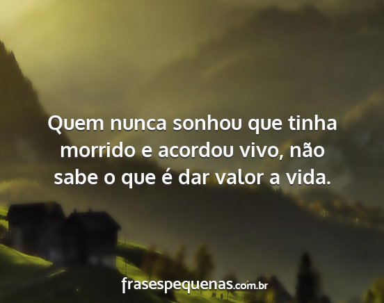Quem nunca sonhou que tinha morrido e acordou vivo, não sabe o que é dar valor a vida.