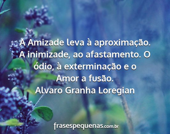 A Amizade leva à aproximação. A inimizade, ao afastamento. O ódio, à exterminação e o Amor a fusão.Alvaro Granha Loregian
